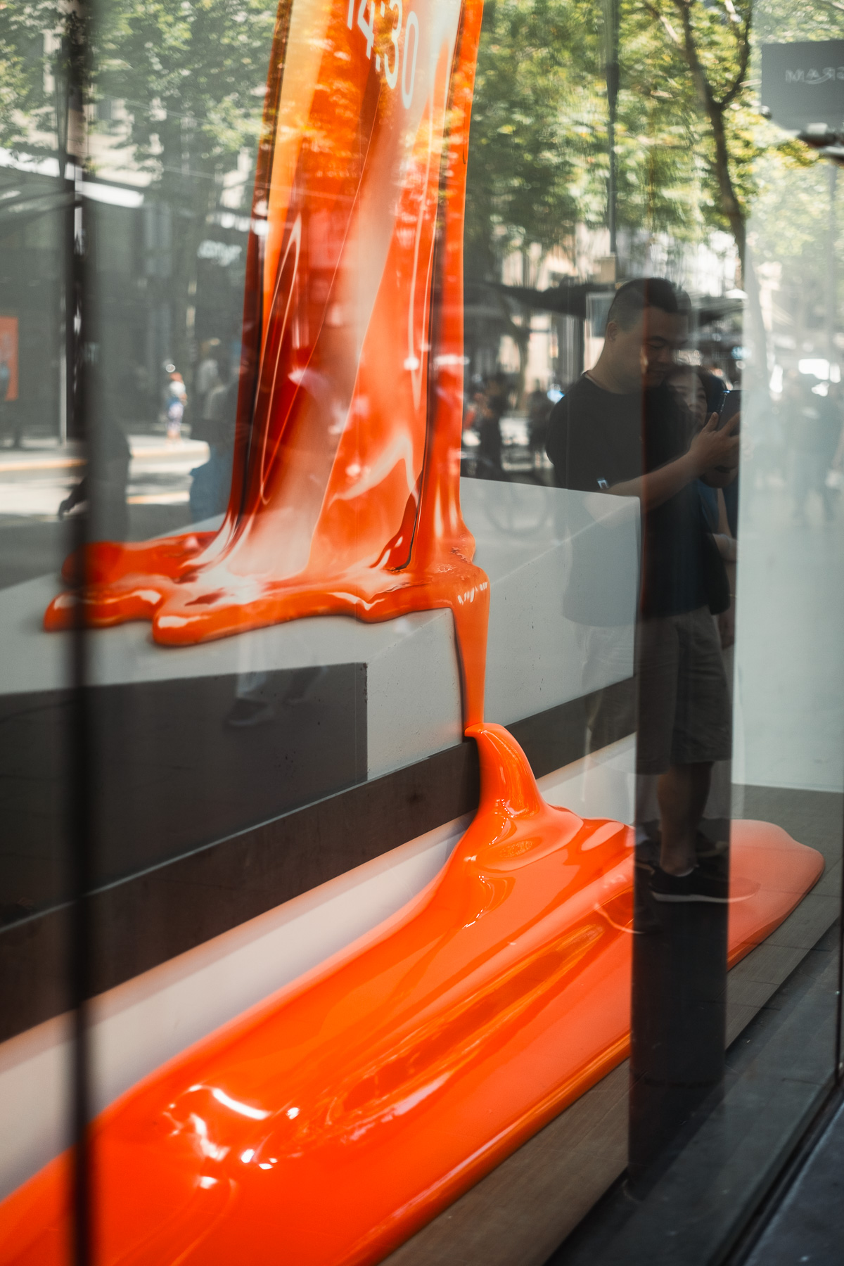 a sales window which had some serious drip - clean spot UV print + a gloss 2 pack painted puddle is sometimes all you need to bring the heat to your windows